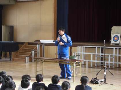 アーチェリー日本代表の古川高晴さんをお招きし、6年生を対象にこれまでの歩みや、オリンピックでの様子、実際の試合での気持ち、メダルをとった時の気持ちなど、いろいろとお話いただきました。