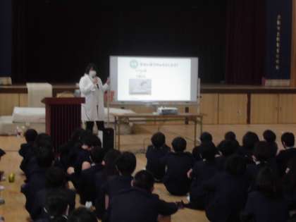 今日は学校薬剤師さんにお越しいただき、くすりの正しい使い方教室を行いました。