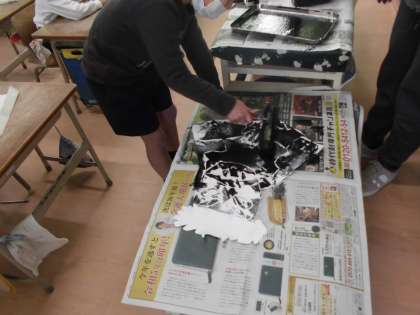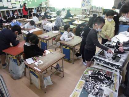 1年生では図画工作科で紙版画づくりに取り組んでいます。