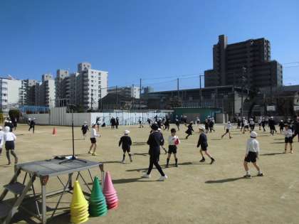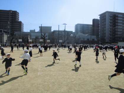 運動場では鬼ごっこを、講堂ではクイズ大会を行いました。