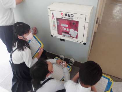 AEDや段差のないしくみ、職員室内での鍵の場所…いろいろ探し、まとめることができたようです。