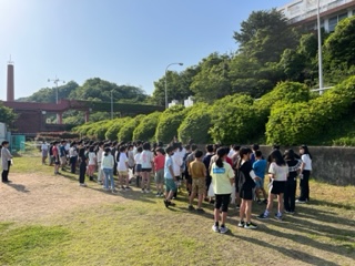 朝の集いの後に集合写真を撮ります。