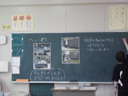 1年生では平和学習の一環として、「へいわ」について学習を進めています。