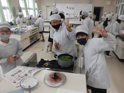 「ゆでる」をテーマに、ほうれん草のおひたしをつくりました。