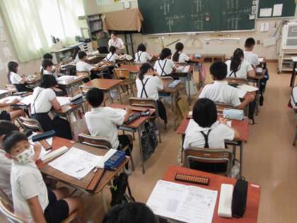 普段のひっ算とはちがった、玉を動かして計算するそろばんでの計算のしかたも学んでいます。