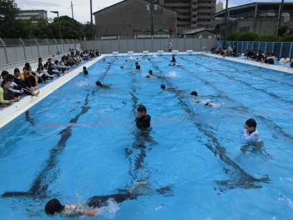 5年生の1学期プール最終授業は着衣泳です。