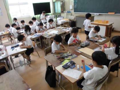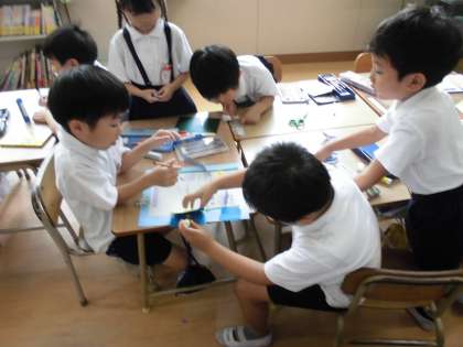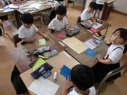 学級活動の時間で、それぞれのかかり活動のけいじカードをそれぞれのグループでつくっていました。