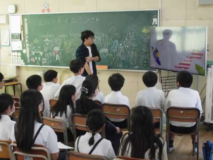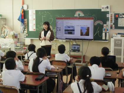 その後、各クラスに分かれて留学生からは国の紹介、子どもたちは日本の文化の紹介をしました。