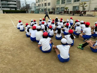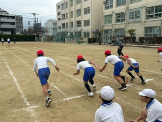 本日、スポーツメーカーのミズノ株式会社による走り方教室を行いました。スタートの姿勢や、腕の振り方などをアドバイスしてもらい、学習の終わりには、ほとんどの児童が速く走れるようになったと実感していました。