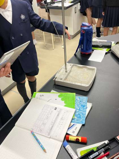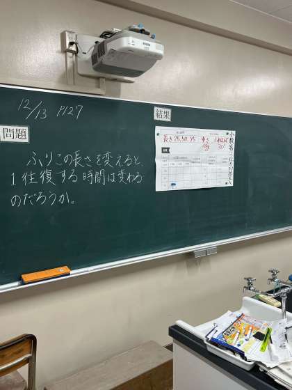 振り子が一往復する時間は、何と関係しているのか、実験しています。タブレットも上手に使っています。