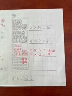 九九を使って、ボールの数を計算しています。いろいろな方法で、答えをみつけました。