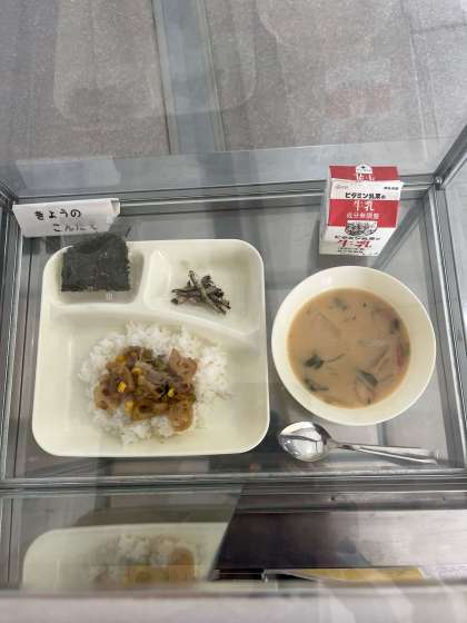 今日は、正月の行事献立で、れんこんのちらしずし、牛乳、ぞう煮、ごまめです。ちらしずしは、れんこんの食感が良く、酢がほどよく効いてて、美味しかったです。