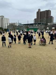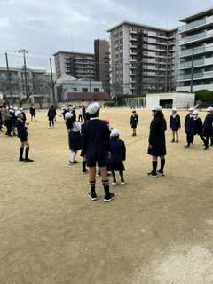 縦割り班で大縄跳びを楽しみました。ちょっと寒いけど、みんな元気いっぱいです。