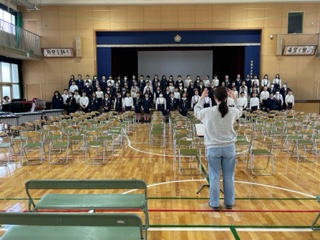 今日の音楽は1〜3組が合同で音楽鑑賞会の練習を行いました。