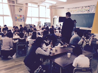 キャンドルのコップに保護者の方と一緒に絵を描きます。