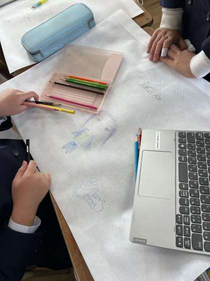 図画工作科で作った作品を持って帰るのに、作品袋を作っています。