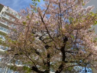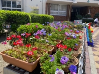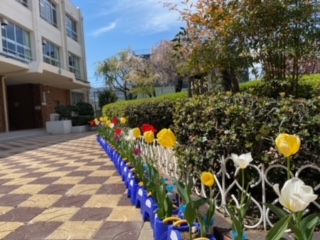 校門花壇 満開です!桜はそろそろ葉桜になっていきます。