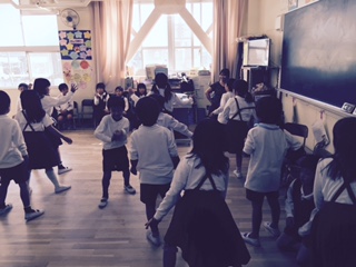 3年生の体育のリレー、1年生の終わりの会前の活動(曲を流して止めたところでストップ)です。