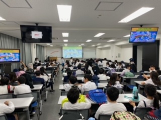 無事到着しました。今にも降り出しそうな空模様、お昼は公園で食べられるかな?