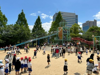 滑り台や鬼ごっこなどをして、元気いっぱい楽しんでいます。