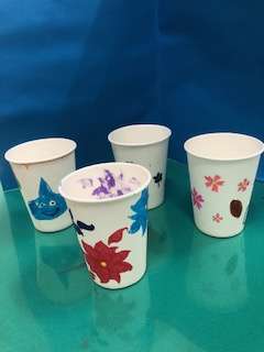 6年生が絵を描いた紙コップにLEDランプを入れて城北川遊歩道に並べて、灯します。10月26日の夜に実施します。お楽しみに。
