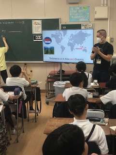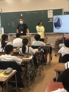 先生の発音に合わせて、英語を話します。みんなしっかりした発音です。