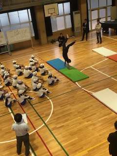 大阪市の体育研修として、たくさんの先生が見に来ました。側方倒立回転をがんばりました。