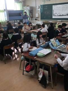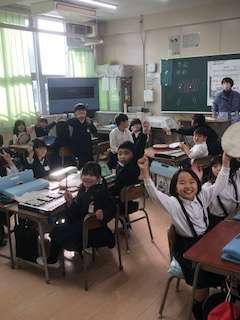 楽しそうな音楽が流れてきました。2年生がリズムよく合奏していました。先生に聞くと初めての合奏だそうです。自然と体が動くようなすてきなリズム。最後にみんなで大成功のポーズを決めてくれました。