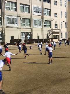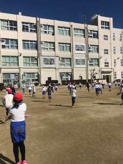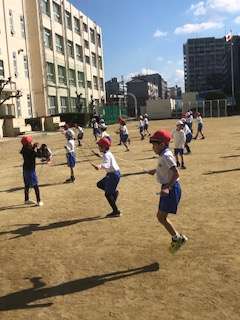 寒い日でも子どもたちは元気。音楽に合わせて、軽やかに跳んでいます。