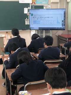 比例と反比例の学習です。反比例の関係をグラフに表わすとどのようになるか、考えています。