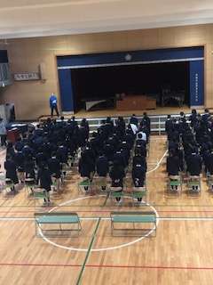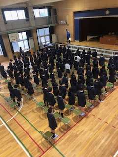 講堂での卒業式練習が始まりました。今日は「さよなら集会」も控えています。
