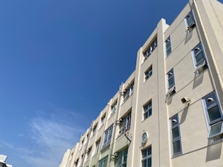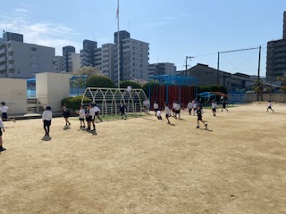とってもいい天気ですね。みんな元気に運動場で遊んでいます!