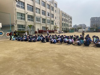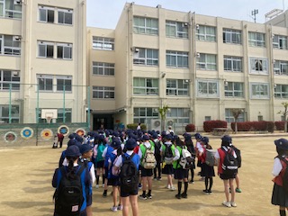先生から 注意事項を確認して 関目成育駅に向かいます。