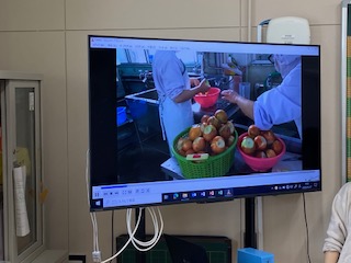 毎日、おいしい給食がどうやって作られているのか、給食室で働く人たちがどんなことをしているのかを、写真やクイズを交えながら楽しく学びました。