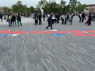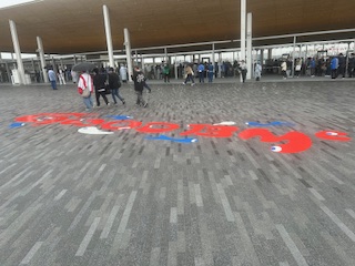 来た時にwelcomeだった文字が、帰りに反対から見ると、、、3年生にはちょっと難しかったかな。