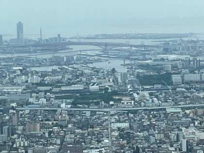 西の方を眺めると赤い港大橋の向こうに万博会場が見えるはずなのですが、残念ながらかすんでいて見えませんでした。