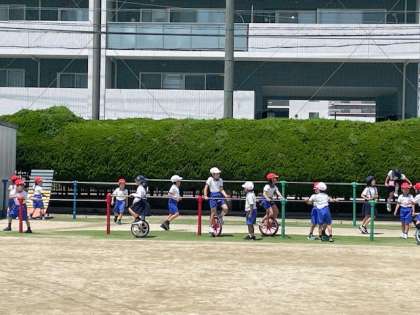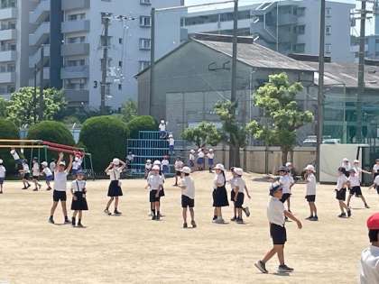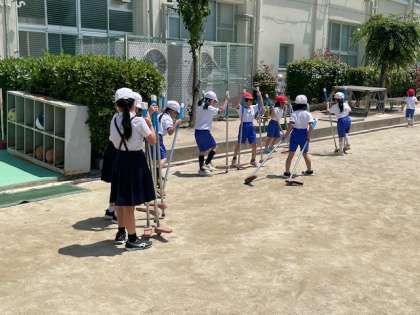 からりと晴れた今日。心地よい風が吹き抜ける運動場では、たくさんの子どもたちが元気いっぱいに活動していました。ドッジボールに鬼ごっこ、低学年は竹馬や一輪車など、思い思いの運動に取り組んでいました。休み時間が終わった後は、しっかりと水分補給をする姿が見られました。