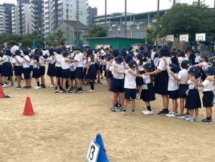 今朝の児童集会は、1年生から6年生が36の班に分かれて活動するたてわり班集会の1回目でした。内容は「かもつ列車」で、まず班の中で低学年と高学年がペアになってじゃんけんをします。その後は、周りの人たちとどんどんじゃんけんをして、長いかもつ列車を作ります。列が長くなるにつれ、じゃんけんにも熱が入り、大きな歓声やため息が聞こえてきました。