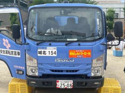 さあ、いよいよパッカー車への乗車体験です。一人ずつ運転席に座り、ハンドルを回したり、アクセルやブレーキを踏んだりしました。降りてきた子どもたちは「おもしろかった」と大喜びでした。