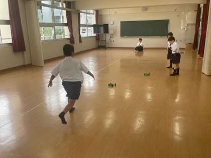 この日は、ゴムの力で動く車を使って「ゴムを伸ばす長さを変えると、車が進む距離はどうなるか」という実験をしていました。班で協力して実験し、しっかりと結果をまとめていました。