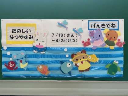 今日から夏休みが始まりました。校長先生のお話にあったように、安全に・元気に過ごすことが大切です。8月26日(火)の始業式で、少し大きくなったみなさんの笑顔に会えるのを楽しみにしています。