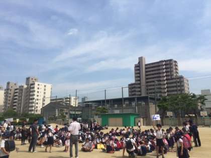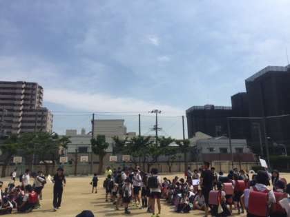 緊急時に備えて、縦割り班による集団下校しました。真剣です。