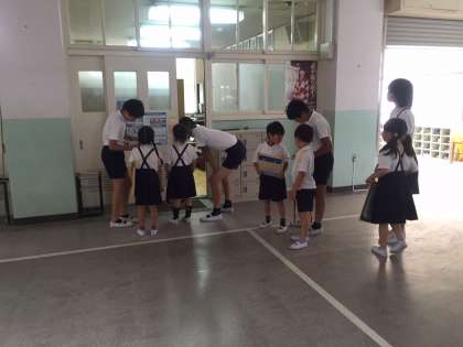 昨日1年生が6年生に連れられて「学校たんけん」をしました。