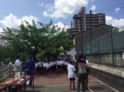 4年生が、市環境局と建設局のご協力で、城北川の水質を調べる学習をしました。
