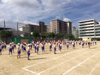 整列、移動の練習もし、この後50m走のタイムを計測しました。