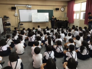 5時間目に学年集会をしました。今までのふりかえりから9月の目標は