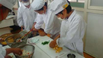 みんなで協力して野菜を切ったり