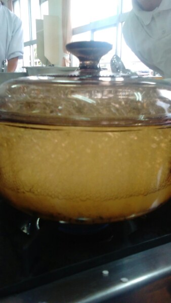 ガラス鍋でご飯をたき、泡が出てくる様子を観察したり