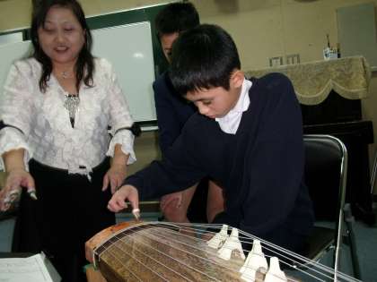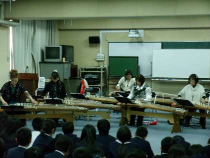 12月12日(木)6年生にお琴の音色を楽しむ機会が訪れました。日本の伝統的な楽器である「琴」でいろいろな曲を聴きました。クリスマスソングもありました。実際に演奏もさせていただきました。