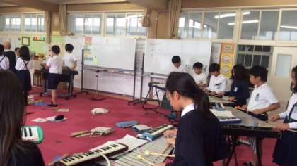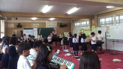 木琴鉄琴や鍵盤ハーモニカを合奏しました。
